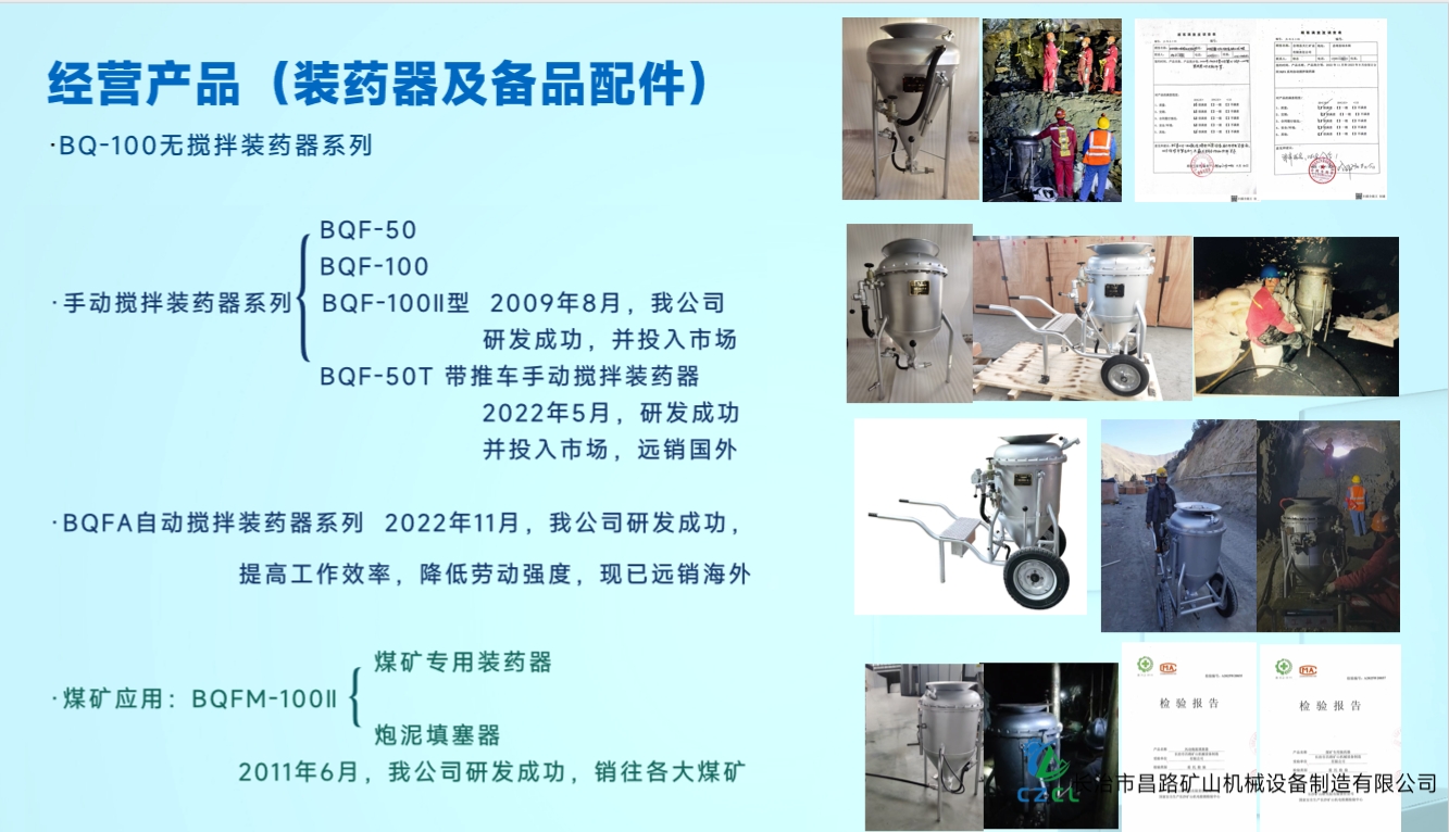 由于井下頻繁裝藥作業(yè),手動攪拌易導(dǎo)致裝藥密度不均,爆破質(zhì)量也有提升的空間,我公司經(jīng)過多次實(shí)驗(yàn),于2022年創(chuàng)新研發(fā)BQFA自動攪拌系列裝藥器,在裝藥過程中,搬運(yùn)方便,減少施工作業(yè)時間,裝藥均勻,提高工作效率,降低勞動強(qiáng)度,裝藥器的各項(xiàng)性能得到顯著的提高,在福建某礦山首次使用,得到礦山的大力認(rèn)可和推薦。